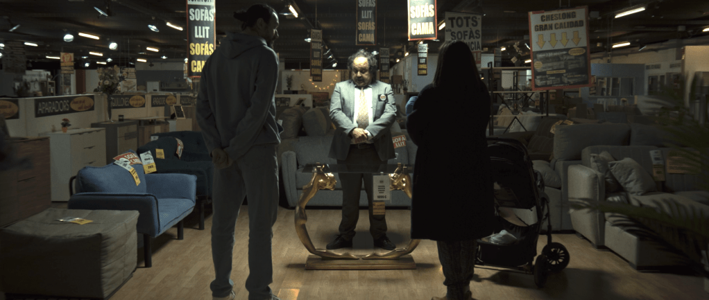 So begins The Coffee Table, a film that starts stressful only to exponentially exacerbate its pervasive anxiousness. As the gulf between María and Jesús deepens with the purchase of their new coffee table, the day will only worsen, inviting the kind of absurdist horrors reserved for the most disturbing social situations, interpersonal dramas, and pitch black comedies. Writer and director Caye Casas balances the film’s many spinning plates with a steady hand, maintaining the discomfort and unpleasantness for the whole of the film’s runtime and successfully translating it to the viewer — for better or worse.